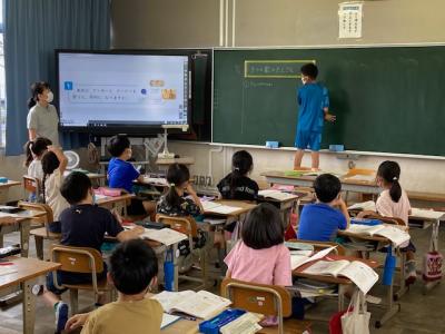 1校時、1年生は音楽の授業でした。その名も「お楽しみ音楽」というとてもすてきな時間です。