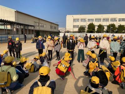 まず、これまでお世話になった班長さんと副班長さんが各通学班の前に立ち、班員からお礼を言いました。「今までありがとうございました。」